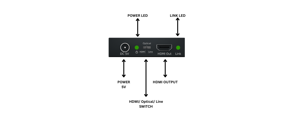 signals from digital optical or analog stereo Line audio