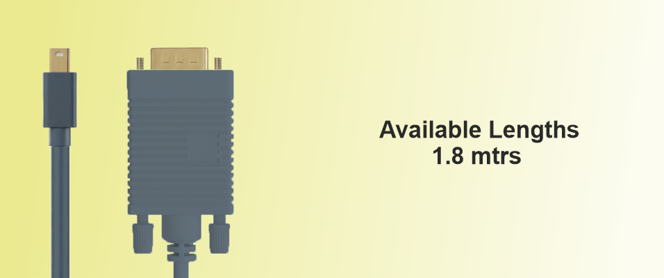 Mini DP M to VGA M cable helps to connect devices like Computer , processors , Laptops with Mini DP interface to Displays and projectors with VGA interface . Mini DP is the source and VGA is to display .The cable support and video signals . It supports resolution of 1920 X 1200 60Hz.Gold plated pins and Shell . The cable is made up of tin coated copper of 28 awg – it is double shielded to provide the best disturbance less signals . Colour Black / Greish Blue . Available Length 1.8 Application – Workstation , Gaming , designing , Control Room …