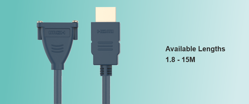 Hdmi M to F Panel Mount Cable is built with high quality annealed Oxygen free copper to give the best 4K video and digital audio experience . The gold plated shell and the pins provides best interface connection and the cable and connector is double layer shielded to provide the disturbance free experience .The Female side can be panel mounted on the wall plates , desk top boxes etc. The cable construction is designed to give bandwidth of 18 Gbps . The cable supports ARC(Audio Return Channel) , Ethernet , 3D , CEC to enable you to perform and achieve multiple functions with your devices . Available in Black / Bluish Black colour in lengths from 300 mm to 20 Mtrs . Suitable for Home Theaters , Conference rooms , Huddle rooms , Training rooms , Educational , Hospital applications .