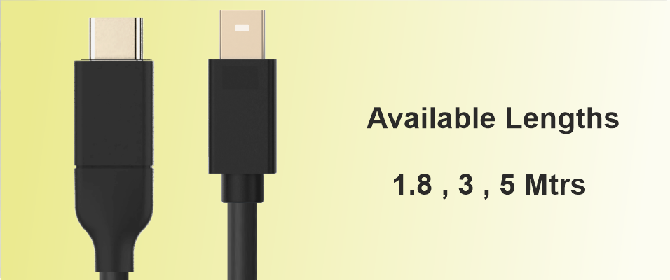 USB 3.1 CM to Mini DP is a video and audio cable . The cable and the connector is fully shielded and the pins are gold coated . The Cables allows you to connect the USB C & Thunderbolt laptop / computer to the display , monitor , projector with MINI DISPLAYPORT . supports 4K 60 Hz resolution .Speed of 21.6Gbps .Supports HBR2/HDR/HDCP 2.2/1.4 . The C port is connected to the source and Mini DP is connected to the display . – the cable dose not support bidirectional function . The c connector is reversible .The cable is constructed with shielded twisted pairs and multi core wires and the gauge ranges from 26 to 34 awg . Available Lengths : 1.8 – 5 mtrs . Applications : IT infrastructure , Control room , Education , studio …..