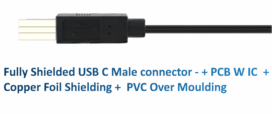 USB 2.0 CM to B Cable is compliant with version 2.0 cable and is backward compatible with v 1.1 . The cable and the connector is fully shielded and the pins are gold coated . It supports Power and data . The cable supports 5V 3 A (15W) Power output . The data speed suppoted up to 480 mbps . The cable is used for charging and data sync .The cable is constructed with twisted pairs and multi core wires and the gauge ranges from 28 to 24 awg . Available Lengths : 1 – 4 mtrs . Applications : Power , Data transfer , Video conferencing , Docking …..