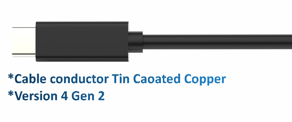 USB 4.0 CM to CM is full featured Gen 2 cable . The cable and the connector is fully shielded and the pins are gold coated . It supports Power , data and av . The cable supports 48 V – 5A (240W) Power output . The cable supports 4K video signals . The data speed suppoted up to 20 Gbps for 1 mtr and 2 mtrs . The cable is with E-marker IC and the c connector is reversible .The cable is constructed with shielded twisted pairs and multi core wires and the gauge ranges from 26 to 34 awg . Available Lengths : 1 – 2 mtrs . Applications : VR , Power , Data transfer , Video conferencing , AV Connectivity , Docking …..
