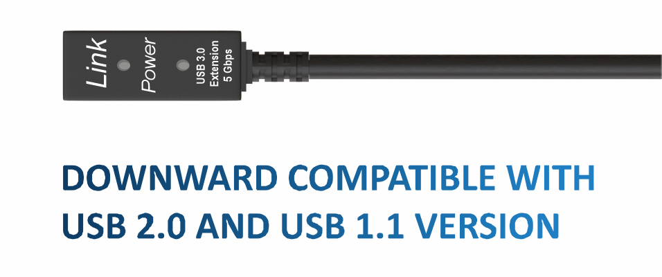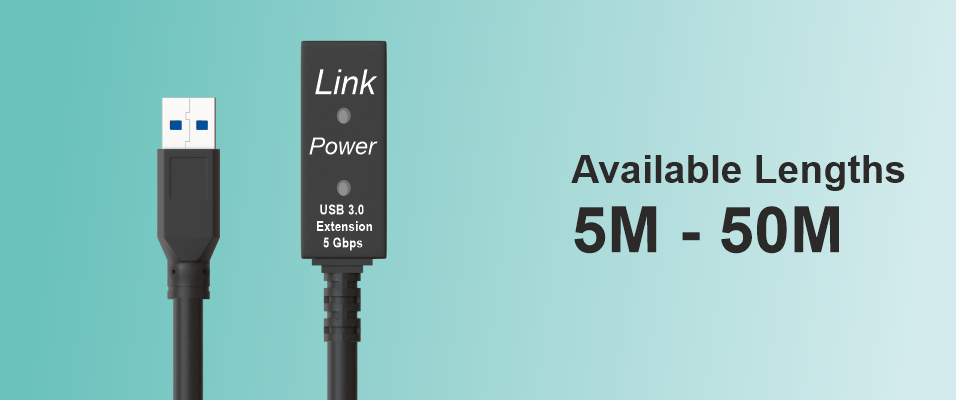 USB 3.0 ACTIVE EXTENSION CABLE enables to connect a usb 3.0 device beyond 5 meters without signal loss . The usb 3.0 active extension cable supports data transfer speeds up to 5 gbps . The cable is backward compatible with usb 2.0 and usb 1.1 devices . Usb A male port is to be connected to the host device and the usb A female port is to be connected to the slave device . The cable is plug and play , hot swappable and no driver required . Power supply input given at usb A female side . Compatible with windows , mac and android systems . Available lengths from 5 meters to 50 meters. Applications machine vision ,video conference camera , speakers , printers , scanners , keyboard , mouse , storage devices …..