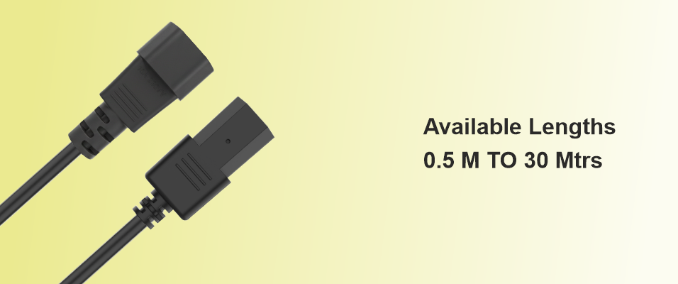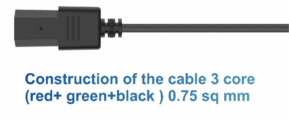 C14 TO C15 Power cord isa 6 Amp power cord made with 3 core 0.7 5 sq mm power cable . The connectors are heavy duty and rugged and is over moulded for longer life . The 3 pin connectors is nickel coated pin . The connection between the cable and connector is crimping – in order to avoid any loose connections and to avoid heat generation due to loose connection . The cable enables connection between IEC 13 power socket to IEC 16 socket of the devices . IEC 15 pin avoids direct contact of pins in open environment to avoid shocks to customers . The power cord is widely used with most of the devices like computers , monitors , appliances , machines and equipments ….