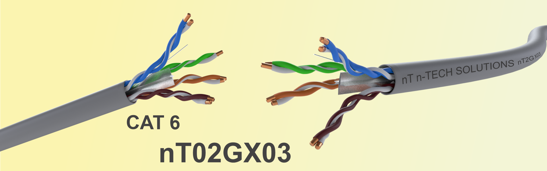nT2GX03 CAT 6 Cable is unshielded twisted pair network cable . Cat 6 cable is the important part of the structured cabling systems, . CAT6 UTP Cable supports Gigabit Ethernet (1000 Base-T) standard. Operates at a bandwidth up to 250 Mhz. This cable exceeds the requirements of TIA/EIA-568.C.2 Category 6 ISO/IEC Class E . It is a 4 pair 23 awg solid conductor cable . Each pair is coloured differently for identification . Available in 305 mtrs easy pull box . Available in Grey ,Yellow and Blue colours .