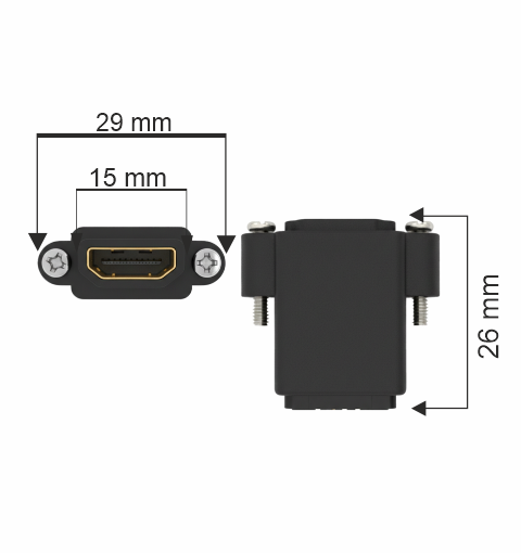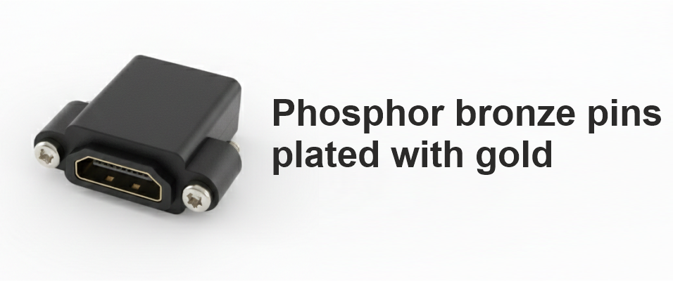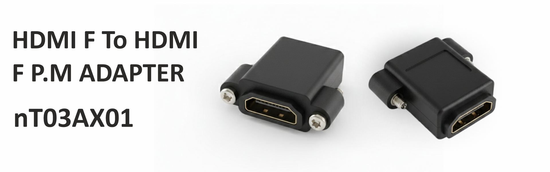 nT03AX01 HDMI F To HDMI F P.M Adapter . HDMI F to HDMI F P.M adapter . HDMI F to HDMI F Panel Mount adapter is a female to female HDMI Jointer . One end of female is panel mountable using screws . The Panel mount construction is rugged and for longer life . The adapter supports reolution of 4K 60 Hz . The adapter enables joining of cables , it also enables to bring the HDMI connectivity to plate , Interface box , table , wall etc . The adapter pins are phosphor bronze and are gold plated . The adapter is dual moulded for longer life and rugged applications . Supports HDCP , EDID , eARC , ARC , 3D , ETHERNET , CEC … Used for AV Integrations , pro audio like Audiotrium , meeting room , class rooms , hospitals , studio ……