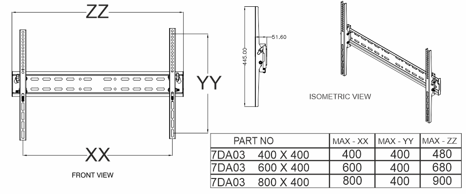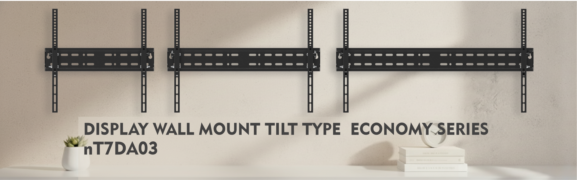 Fixed wall mount series for flat and curved display panels -with up and down 12 degree tilting function available in 4 ranges – nT07DA03A suitable for displays from 32″ to 55″-vesa 400×400 -weight capacity -50 Kgs . nT07DA03B suitable for displays from 42″ to 70″-vesa 600×400 -weight capacity -50 Kgs . nT07DA03C suitable for displays from 32″ to 55″-vesa 400×400 -weight capacity -35 Kgs . nT07DA03D suitable for displays from 42″ to 70″-vesa 600×400 -weight capacity -35 Kgs . suitable for office , home , reception , digital signage , education and hospital applications .